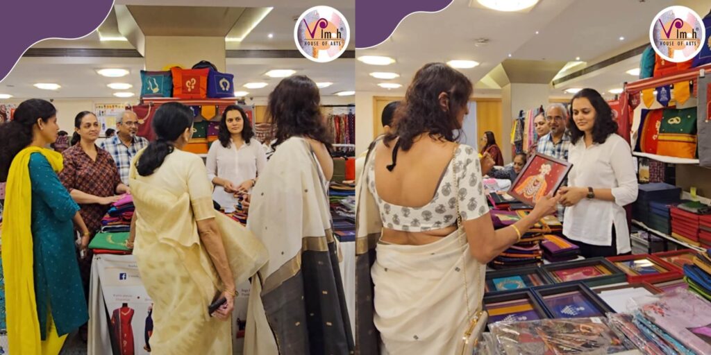 If you are into beautiful hand crafted and earth friendly products, you will love Vimoh- house of arts. They have a variety of products ranging from coconut jewelry to hand painted khunn bags, sarees and home decor.