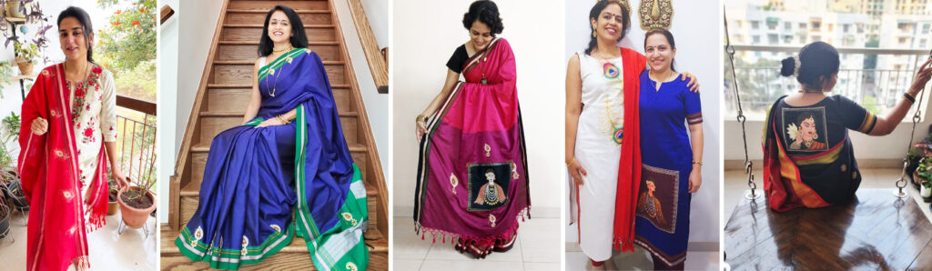 Big Thank you to Sneha for painting such a beautiful 'Lavani Dancer' on my Khann saree, just as I wanted. For me the highlight of this painting is the intricacy in depicting Marathi jewelry. I am impressed with her eye for detail in this job. Must say that it is a JOB WELL DONE. Big thank you once again for creating this piece of art. I wish you growth and success in your journey as an artist and a business woman.