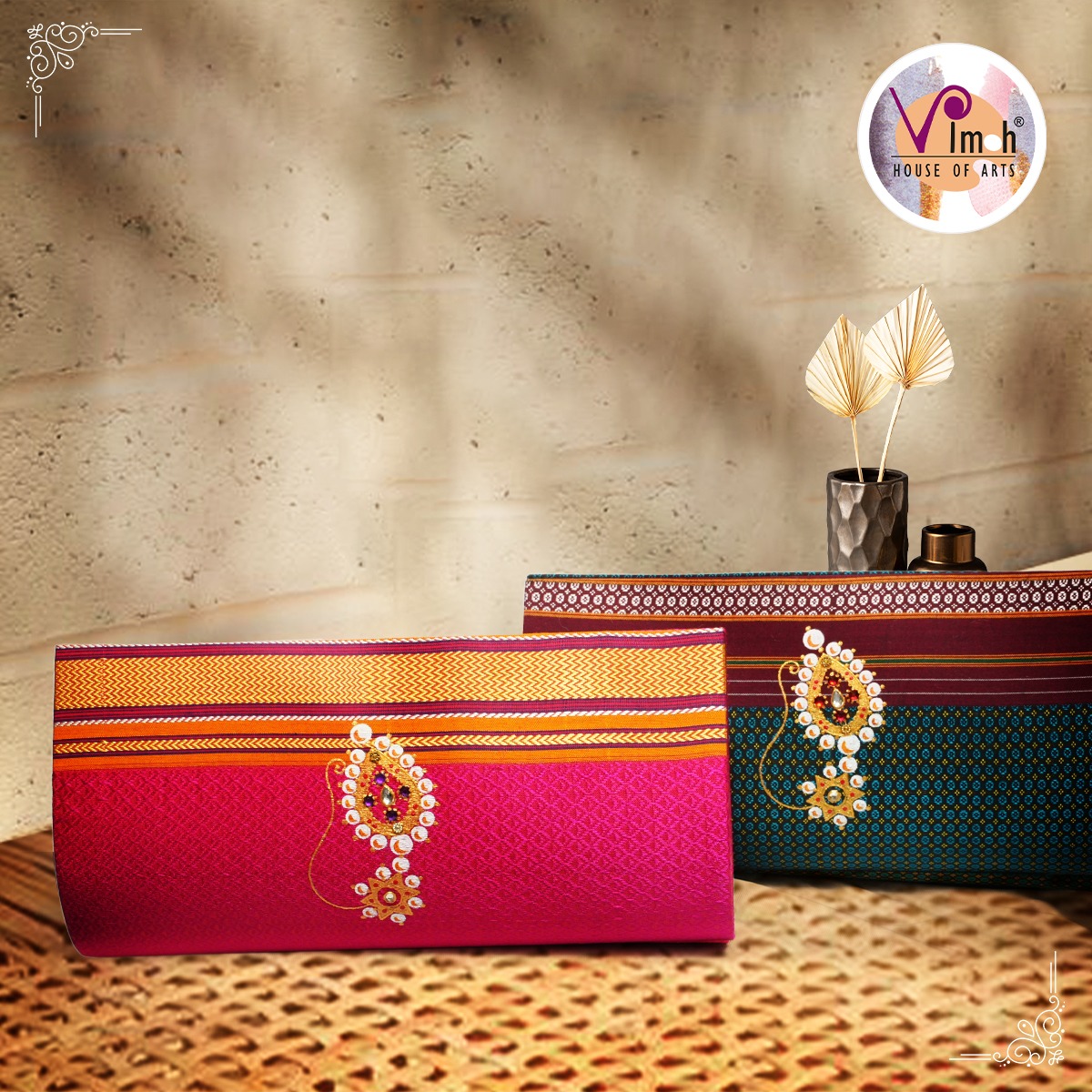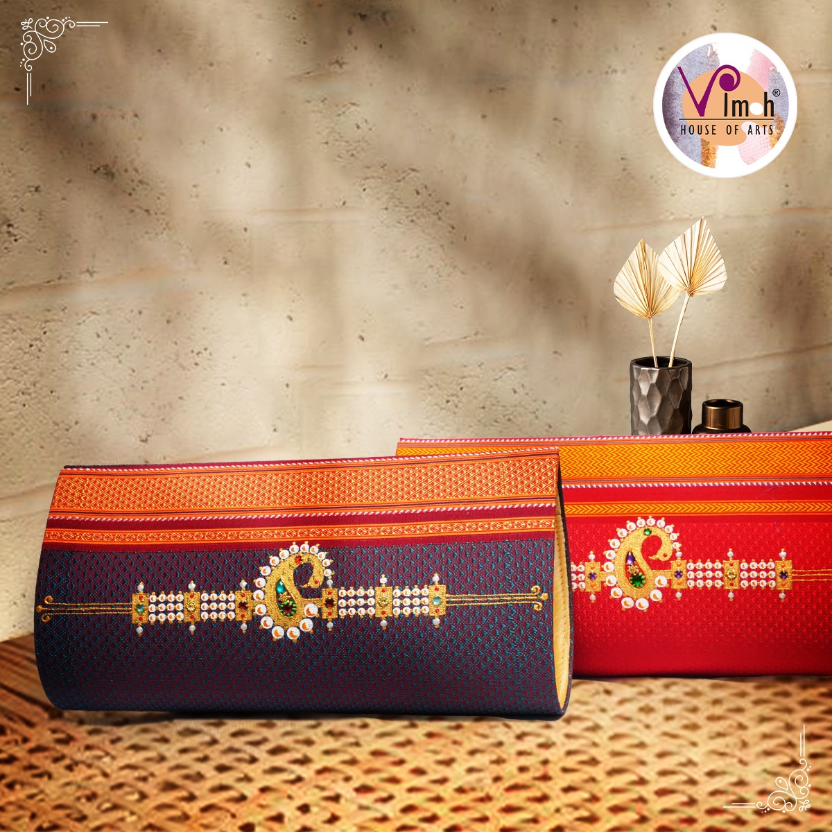 Our hand painted miniature ornament clutches have metal string, a small zip pouch & a specious main compartment to carry your essentials effortlessly.