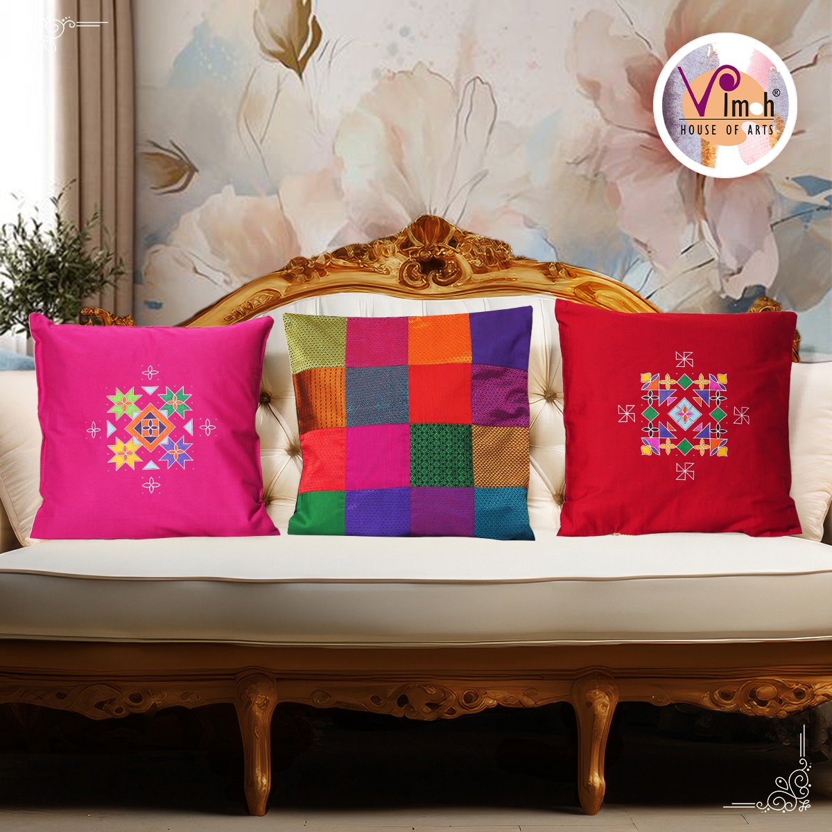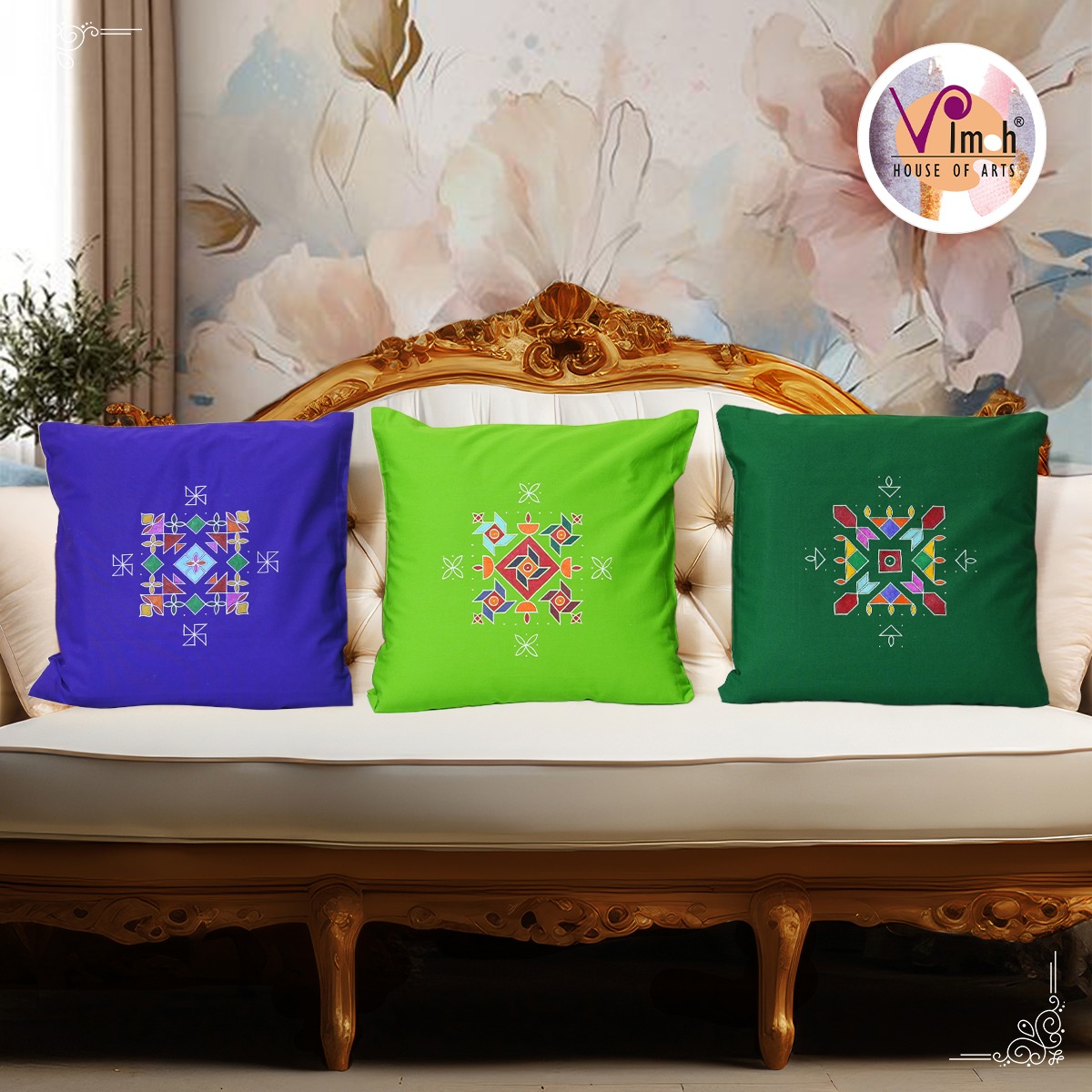 Traditional Maharashtrian ‘Dot Rangoli’ hand painted on pure cotton cushion covers.