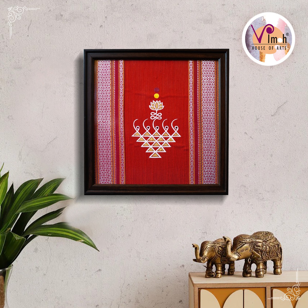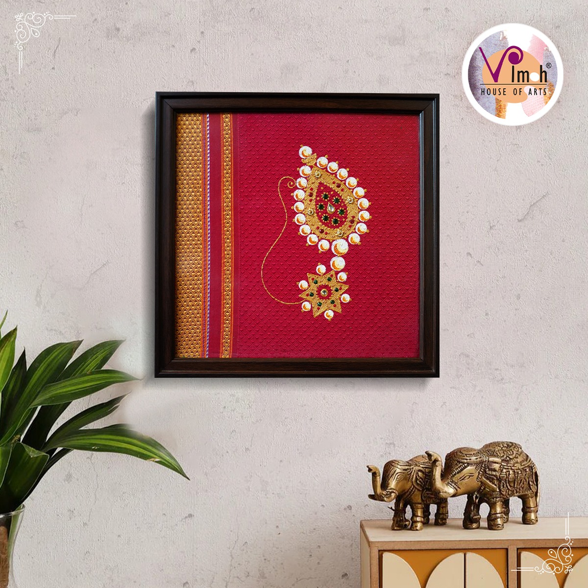 Our unique wall frames feature aesthetically crafted fabric base with hand painted ‘Saraswati’ & jewel motifs.